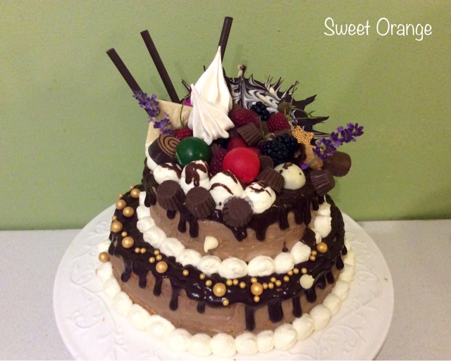 2. Czekoladę rozpuszczamy w kąpieli wodnej. Lekko studzimy. Masło z cukrem ubijamy, podczas miksowania dodajemy czekoladę. Krem rozrzedzamy lekko śmietaną. Ja dodałam jeszcze dwie łyżki spirytusu.